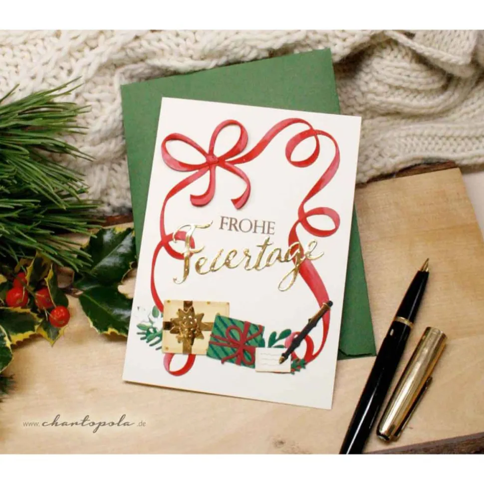 Dieses Gefühl möchte meine Weihnachtskarte einfangen: die leise Freude, das Staunen, das Innehalten. Jede Karte entsteht in liebevoller Handarbeit in meiner kleinen Manufaktur in der Oberlausitz. Feine Papiere, natürliche Farbtöne und kleine Details, die erst auf den zweiten Blick ihre Schönheit zeigen – all das verbindet sich zu einem Stück Weihnachtsstimmung, das man in den Händen halten kann.