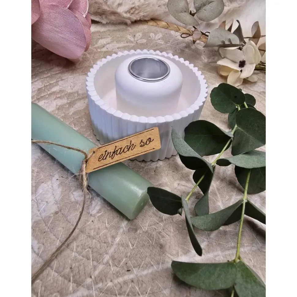 Diese handgefertigte, geriffelte Schale aus Raysin trägt im Inneren einen fest integrierten Kerzenhalter und wird mit echtem Eukalyptus liebevoll dekoriert. Eine sanfte Kerze und ein kleiner Anhänger mit der Aufschrift „einfach so“ machen sie zu einer besonderen Aufmerksamkeit – ehrlich, schlicht und von Herzen.