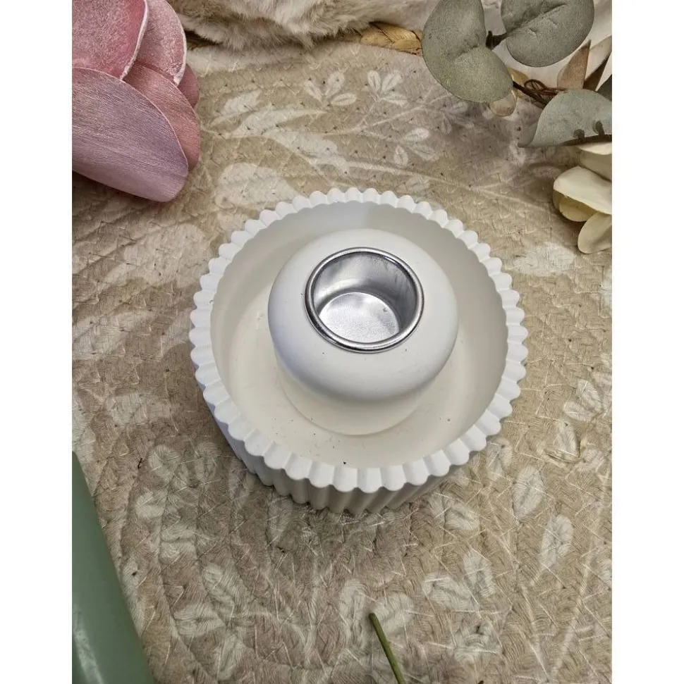 Mit ihren Maßen von 8 x 8 cm und einer Höhe von 3,5 cm ist sie bewusst dezent gehalten. Perfekt für den Nachttisch, das Sideboard oder als kleines Licht auf dem Tisch.
