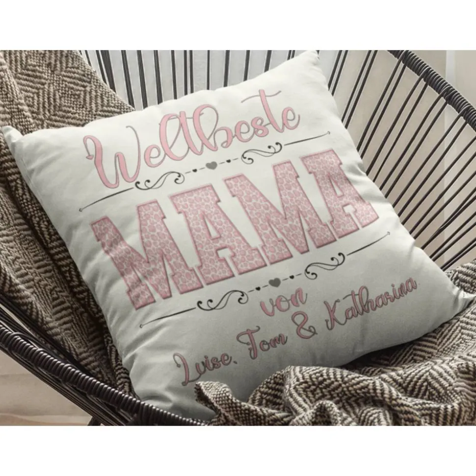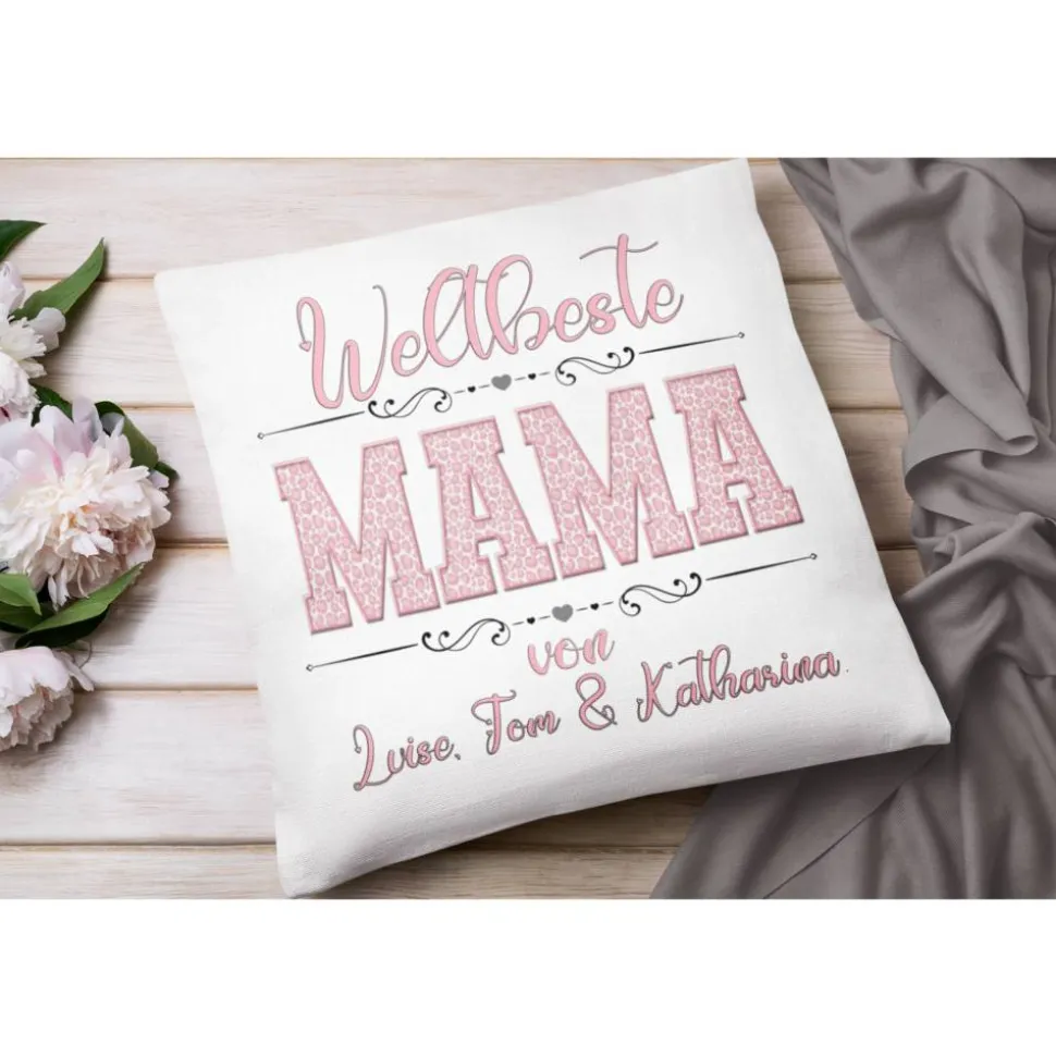 Ihr Mama Kissen mit Hübschen muttertags Motiv . Personalisieren Sie ihr eigenes Kissen mit Wunschnamen und erhalten somit ein Unikat an einem Namenskissen.