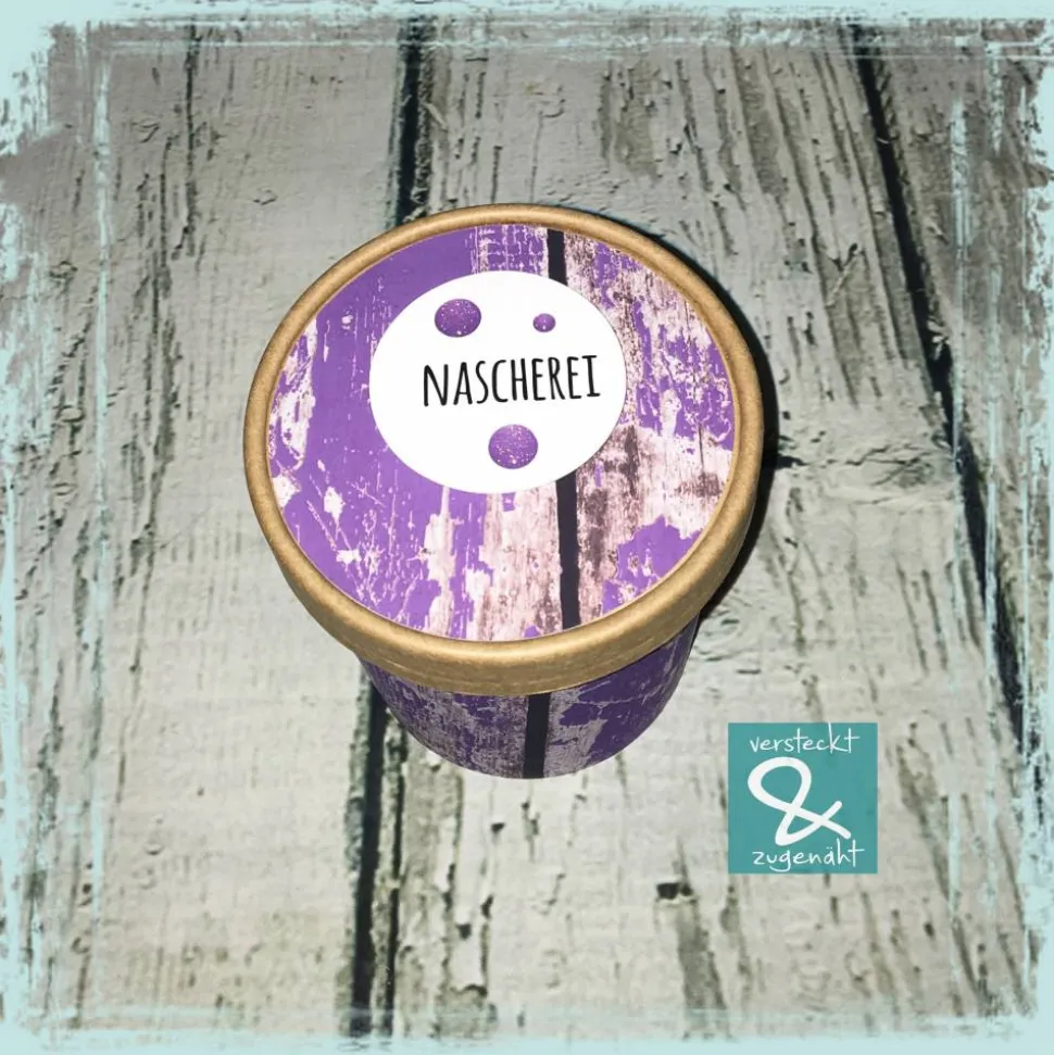 Ursprünglich waren das Suppenbecher to go, Eine Banderole um den Becher und der Kreis auf den Deckel wurden von mir gedruckt, geschnitten und aufgeklebt. Das Design ist von Kleine Göhre (