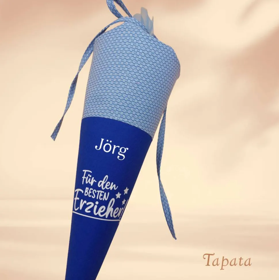 Als Highlight kann die Schultüte mit dem Namen der Erzieherin / des Erziehers versehen werden.