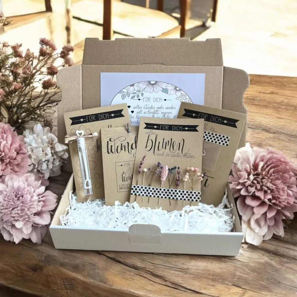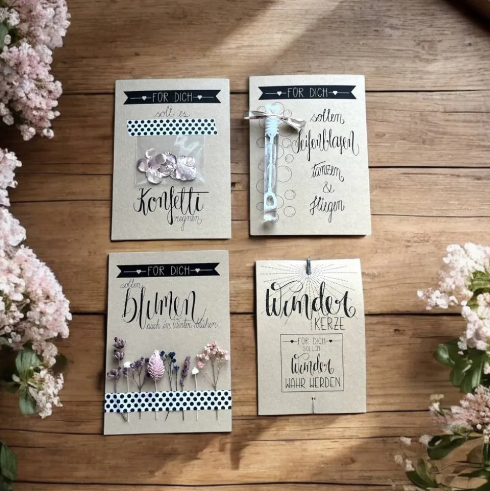 – Karte mit Trockenblumen „Für dich sollen Blumen auch im Winter blühen“