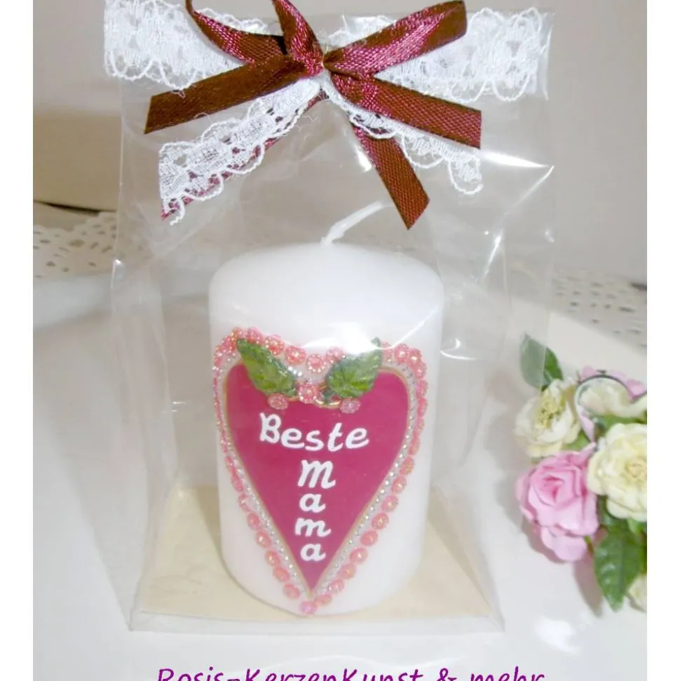 Geschenk-Kerze zum  Muttertag mit HERZ * handverziert * in Geschenkverpackung * Mitbringsel