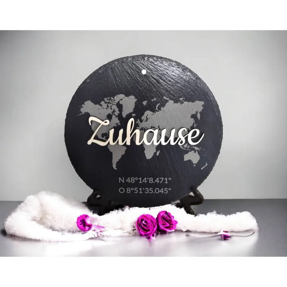 Optional können sie die Schieferplatte mit ihren Wunschkoordinaten verzieren.