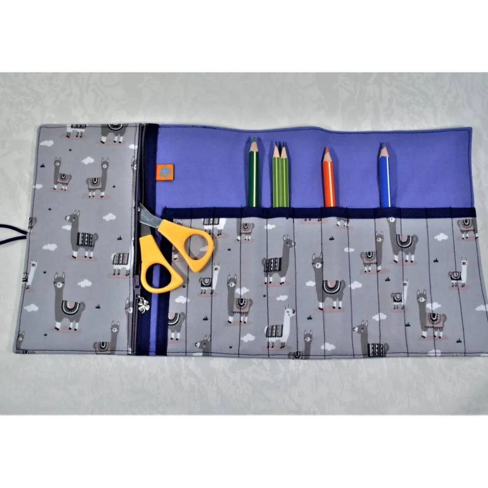 Dieses Mäppchen für Stifte, Schere, Kleber usw. ist zum Zusammenrollen
