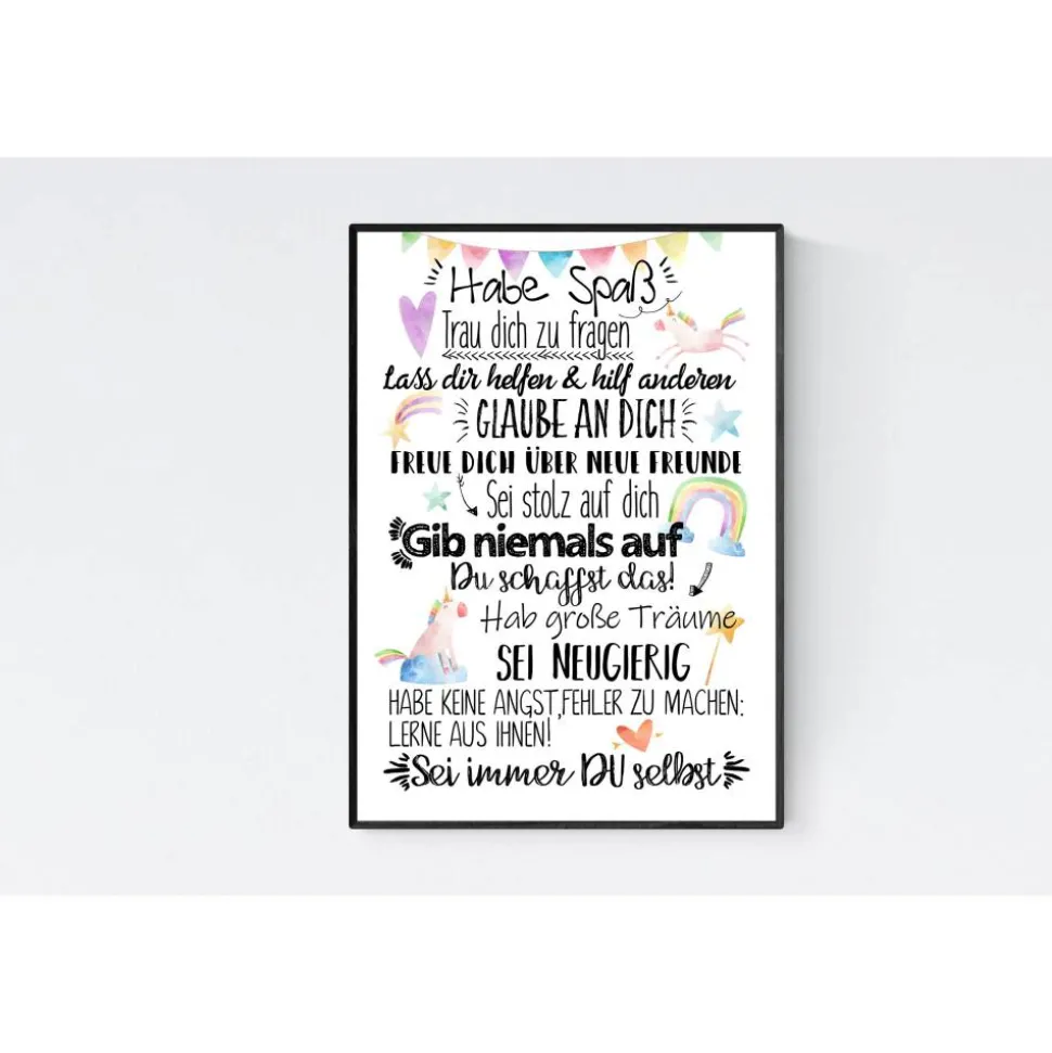 Ein toller Mutmacher für den neuen Lebensabschnitt in einem originellen Einhorn Design, das die Kinderzimmerwände schmückt.