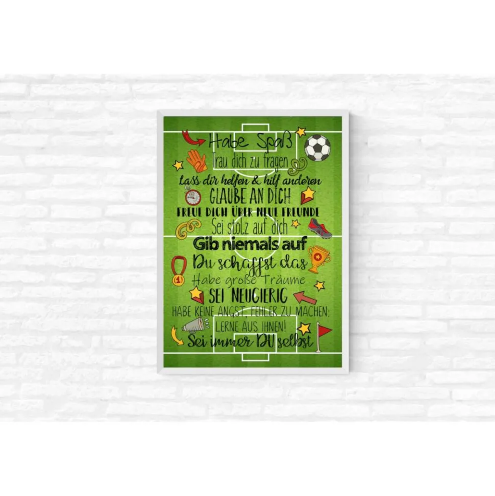 Ein toller Mutmacher für den neuen Lebensabschnitt in einem originellen Fussball Design, das die Kinderzimmerwände schmückt.
