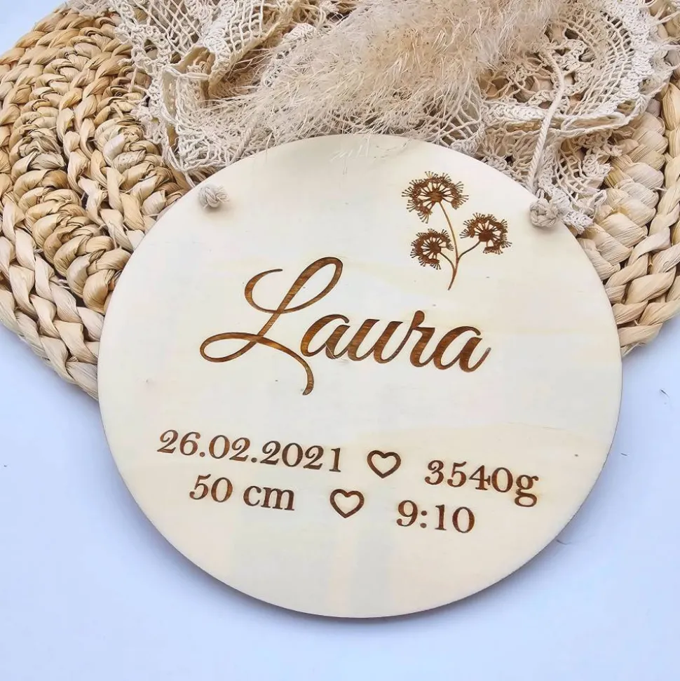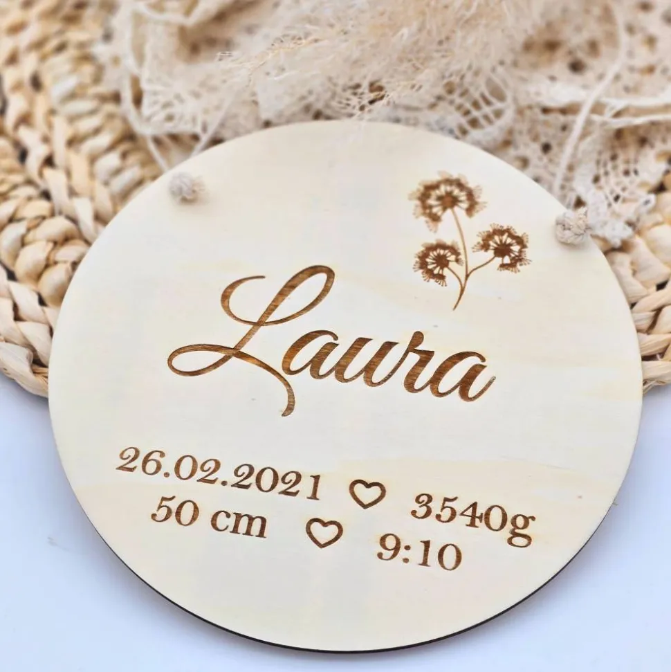 1 x personalisiertes Holzschild mit Geburtsdaten