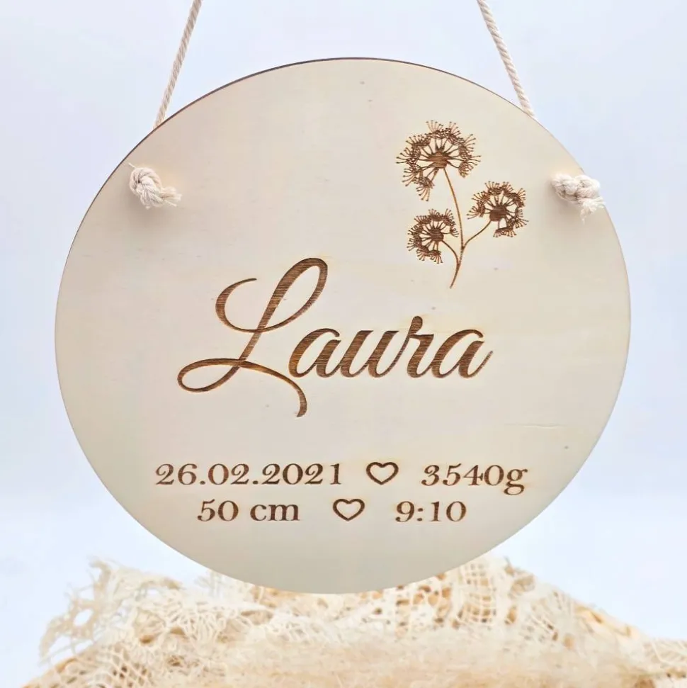 Feiere die Ankunft eines neuen Lebens mit unserem zauberhaften personalisierten Holzschild. Dieses einzigartige Namensschild mit Geburtsdaten ist die perfekte Deko für das Kinderzimmer und ein unvergessliches Geschenk zur Geburt. Handgefertigt aus hochwertigem Holz, verleiht dieses Schild jedem Kinderzimmer eine persönliche Note. Jedes Holzschild wird individuell mit dem Namen und den Geburtsdaten des Kindes graviert, wodurch es zu einem besonderen Andenken für Eltern und Kind wird. Ideal als Baby Shower Geschenk oder zur Geburt.