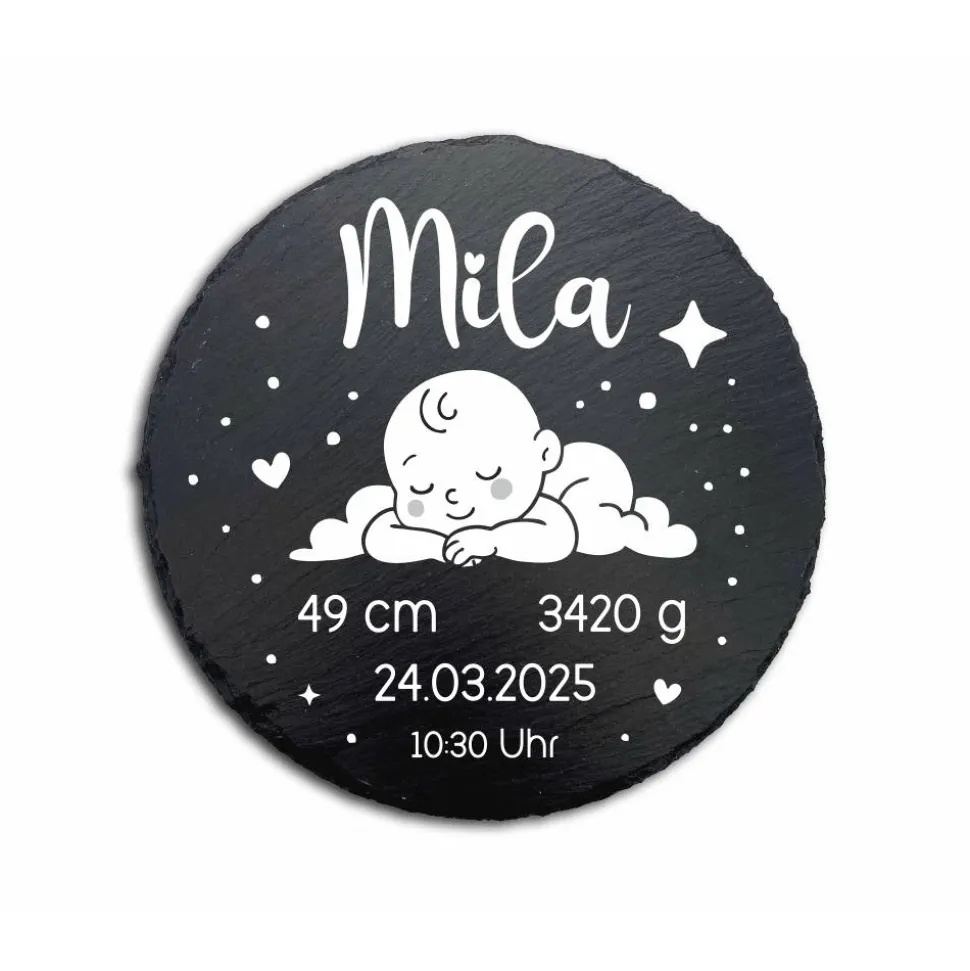 Gefertigt aus echtem Naturschiefer und individuell graviert mit Namen, Geburtsdatum, Uhrzeit, Gewicht und Größe, wird jede Tafel zu einem einzigartigen Erinnerungsstück. Ideal als Geschenk zur Geburt, Taufe oder für das Kinderzimmer.