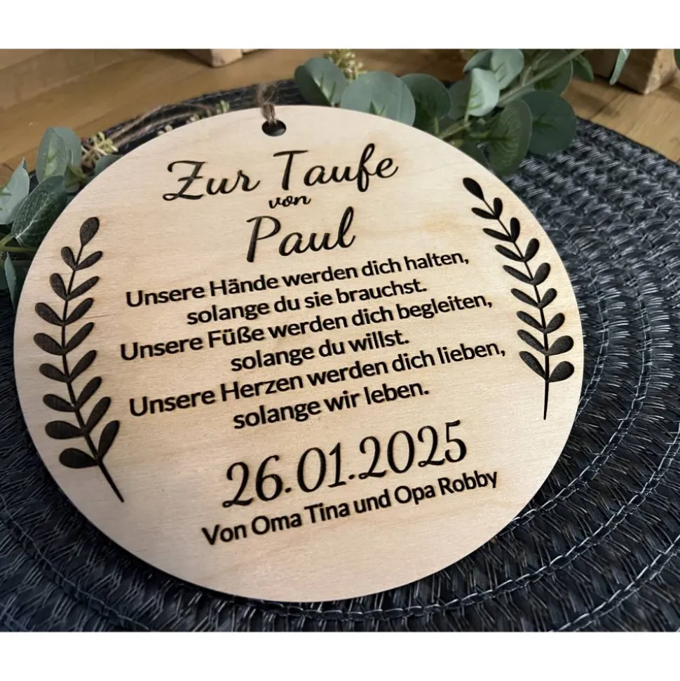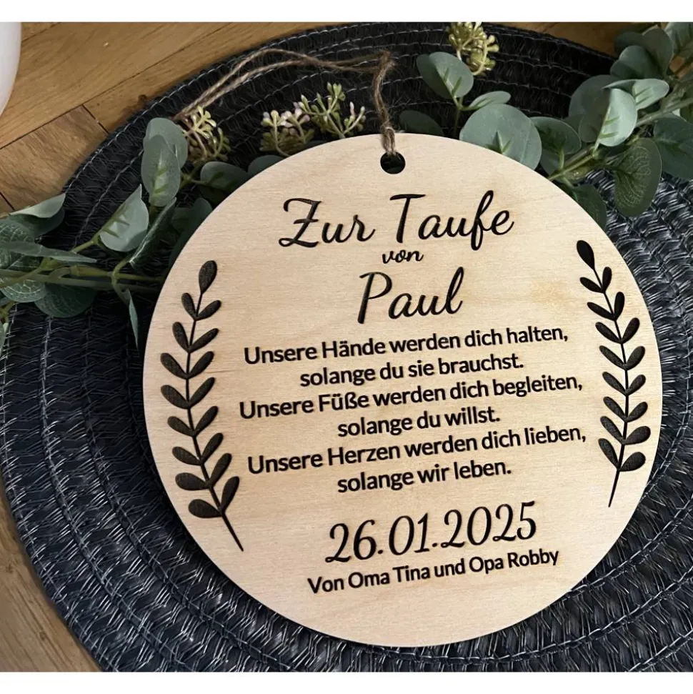 Das Schild wird mit modernster Lasertechnologie gefertigt, was für eine präzise und ansprechende Gestaltung sorgt. Es eignet sich hervorragend als Geschenk von Paten, Großeltern oder anderen lieben Verwandten und Freunden.