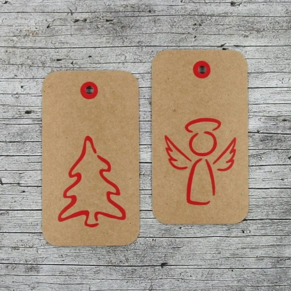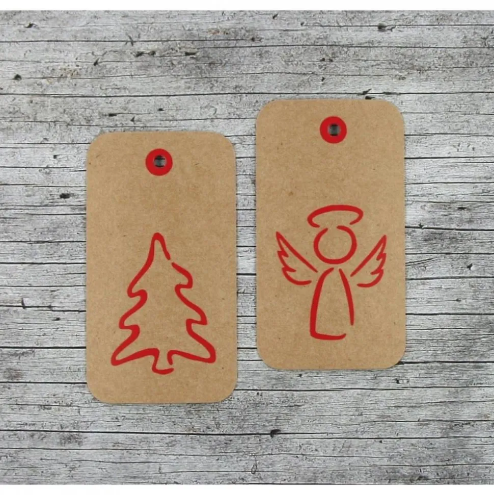 Geschenkanhänger Baum+Engel mit Lochung 6er Set