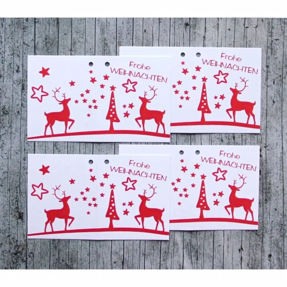Geschenkanhänger HIRSCHrot2 mit Lochung 4er Set,