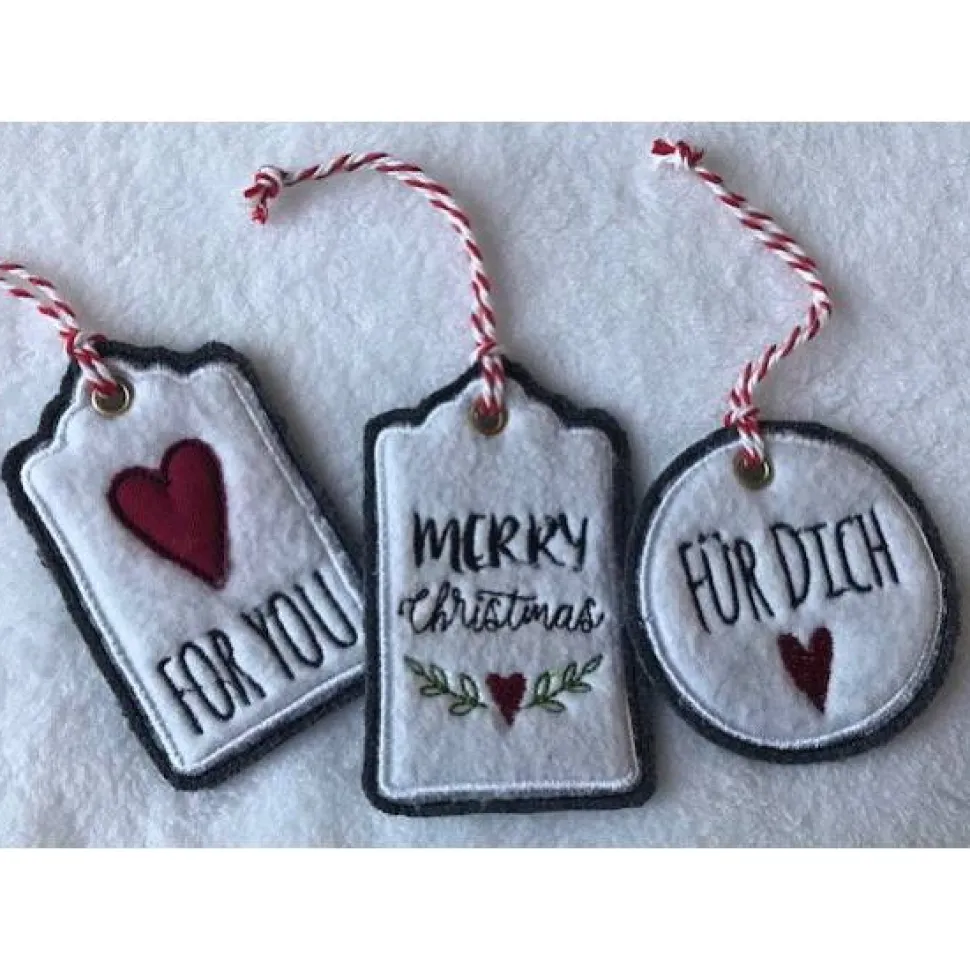 Wenn es mal etwas Besonderes sein soll, sind diese handgefertigten Geschenkanhänger (Stickdatei Stoffcut) perfekt geeignet, Deine Geschenke zu verschönern!