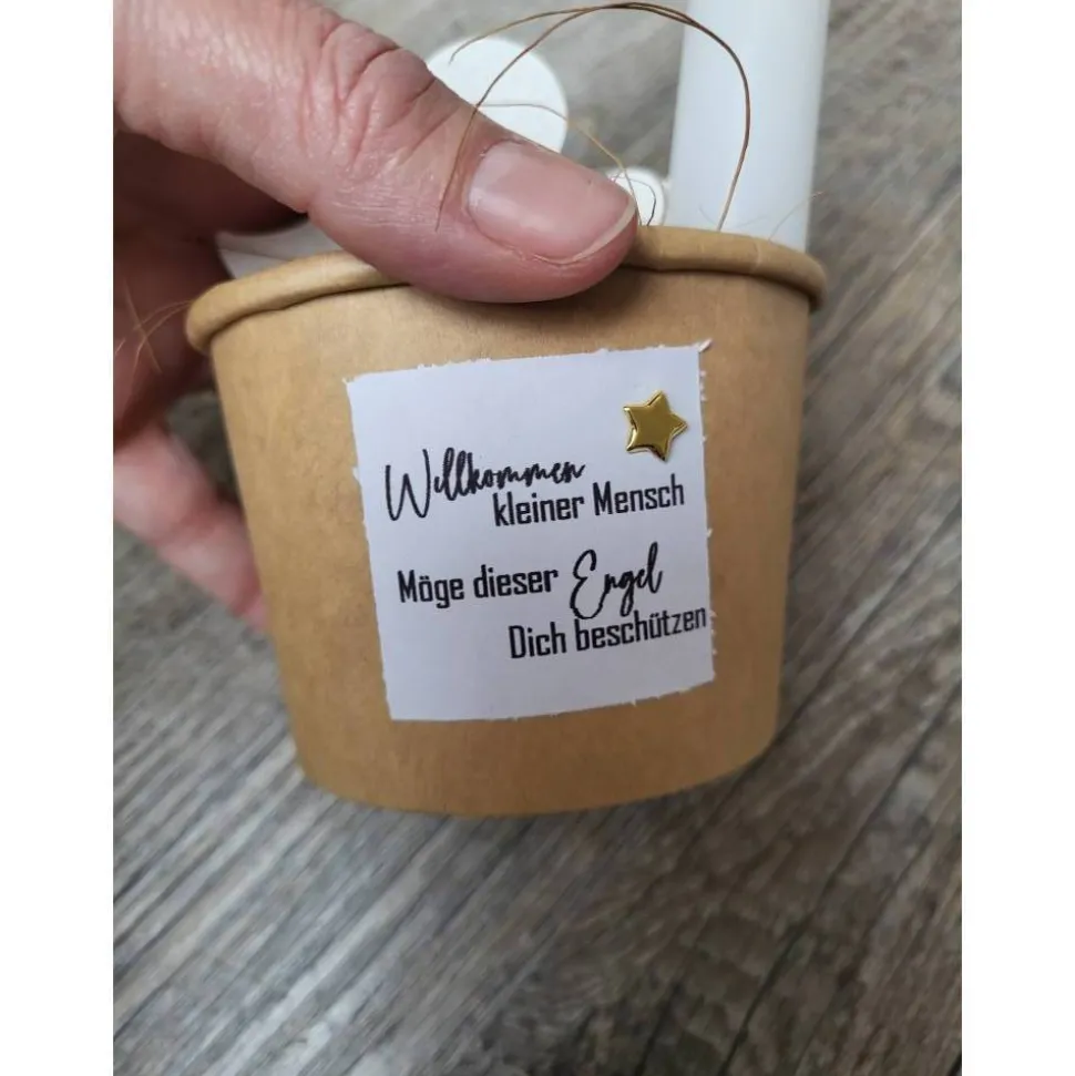Der Becher ist beschriftet und mit einer goldenen Sternklemme versehen.