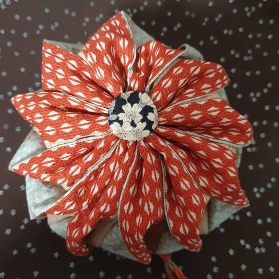 Der Knopf auf der Unterseite wurde mit japanischem Stoff überzogen.
