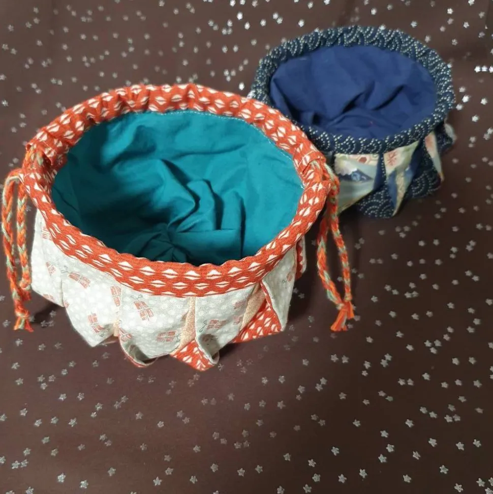 Bei diesem Beutel mit doppeltem Kordelzug wurden vorgewaschene Designerstoffe (100% Baumwolle) verwendet.