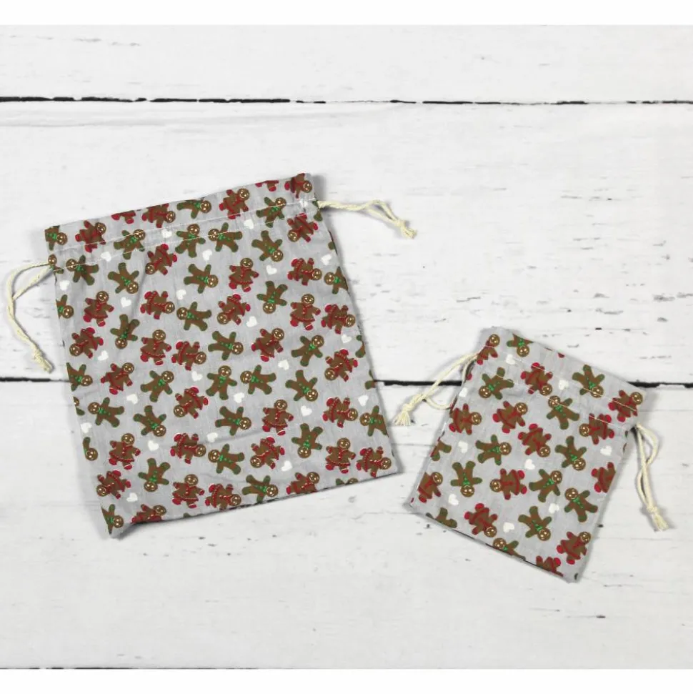 Begrüße die festliche Jahreszeit mit unseren charmanten Weihnachtssäckchen, handgefertigt aus hochwertigem hellgrauem Baumwollstoff mit niedlichen Lebkuchenmännern, Lebkuchenfrauen und zarten Herzchen. Die handliche Baumwollkordel ermöglicht durch ziehen ein einfaches Verschließen der Säckchen.