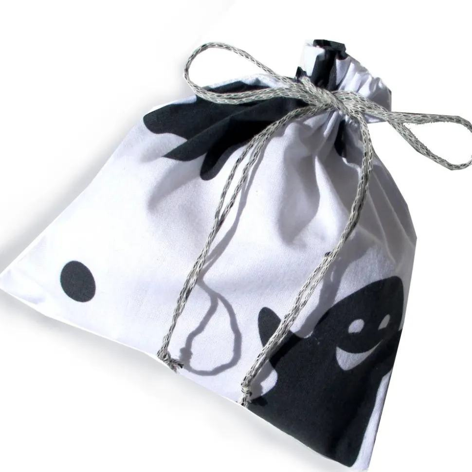 Entdecken Sie den coolen Geschenkbeutel Gespenster! Dieser Geschenkbeutel ist die perfekte Alternative zu Einwegverpackungen. Er wird aus 100% Baumwollstoff genäht und begeistert mit seinem schwarzen und weißen Gespenster-Muster – ideal zu Halloween oder als originelle Geschenkverpackung.