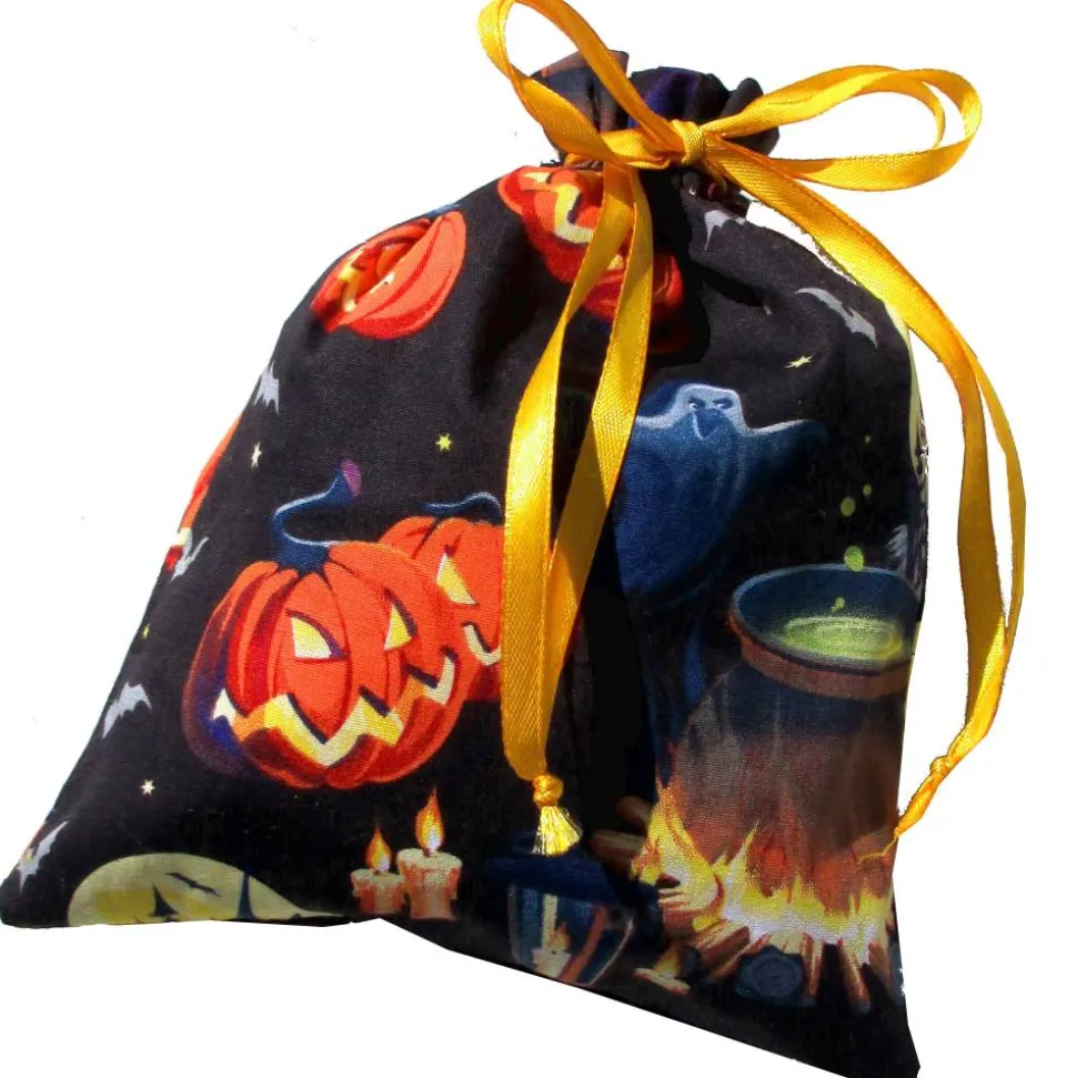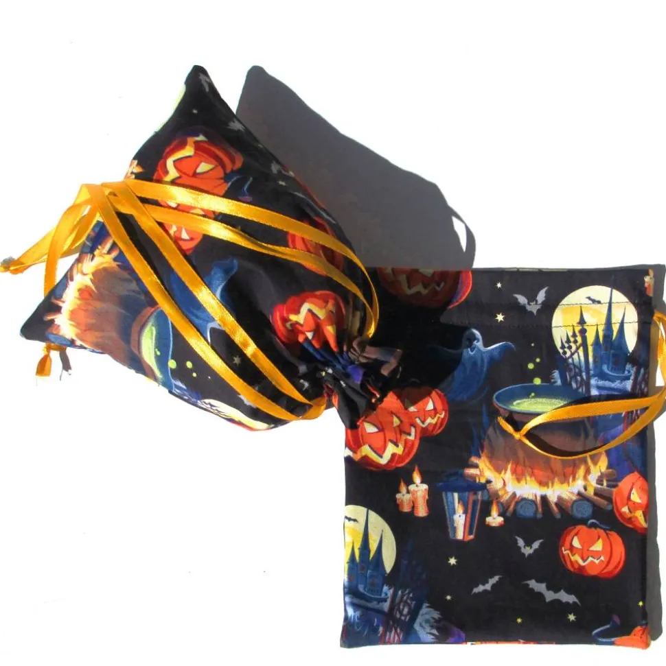 Mit seinem schwarzen und bunten Gespenster-Muster ist dieser Geschenkbeutel die perfekte umweltfreundliche Geschenkverpackung für Halloween oder andere Anlässe. Der no waste bag eignet sich ideal zum Sammeln von Süßigkeiten oder als kreative Verpackung für kleine Geschenke.