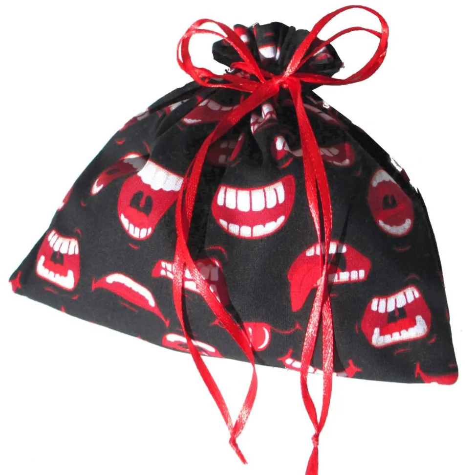 Der Beutel misst 17 cm in der Breite und 15 cm in der Höhe und ist damit ideal geeignet, um Süßigkeiten zu sammeln oder kleine Geschenke stilvoll zu verpacken. Mit den roten Satinbändern im Tunnelzug können Sie den Beutel sicher öffnen und verschließen.