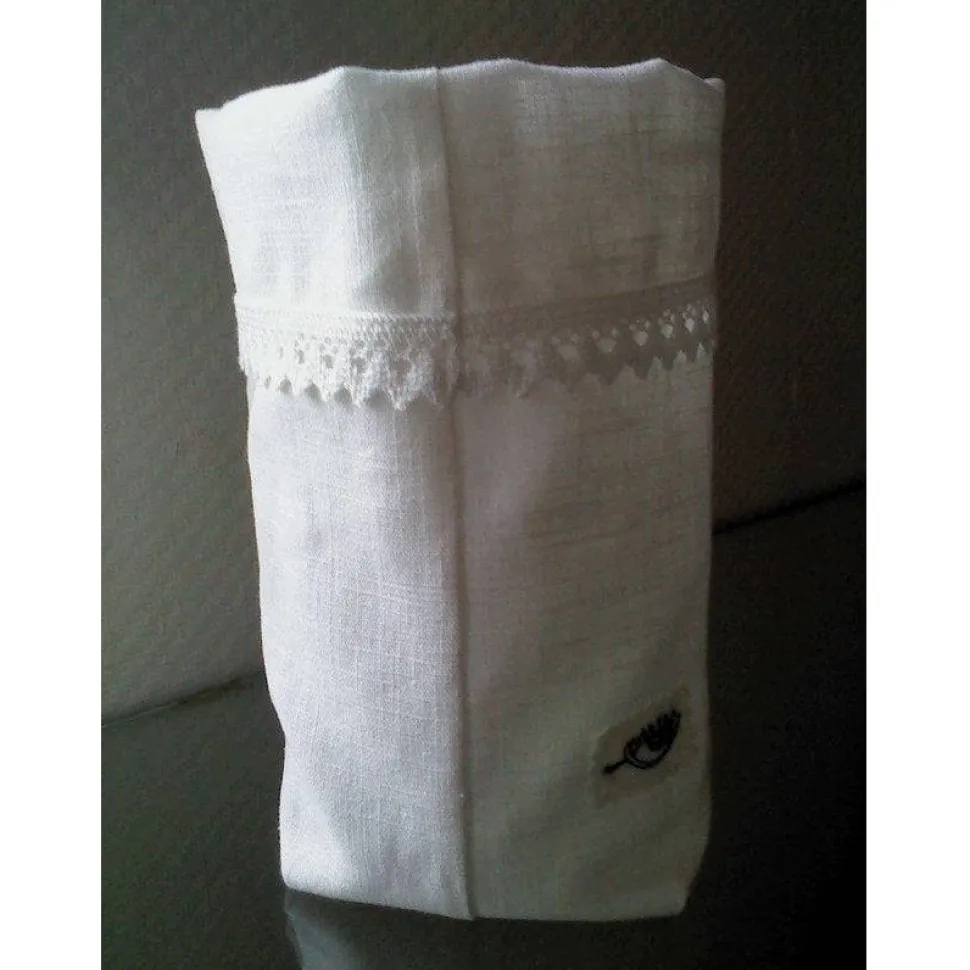 Maße: Höhe 24cm nicht umgeschlagen, Umfang 38cm. Der Lichtbeutel lässt sich bis 30° waschen und auf Baumwolle-Leinen gebügelt werden.