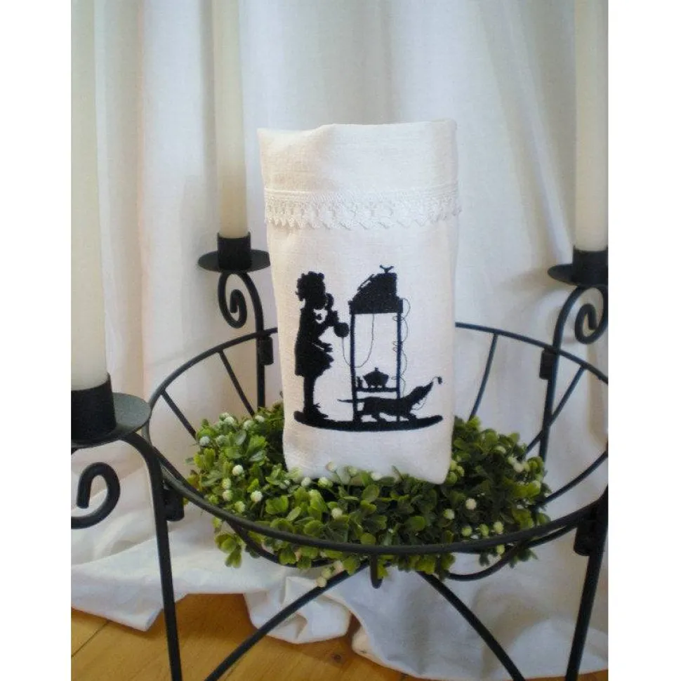 Entdecke den einzigartigen Geschenkbeutel Lichtbeutel Vasenhusse Mädchen Telefon Leinen GESTICKT – ein liebevoll handgefertigtes Highlight für dein Zuhause!