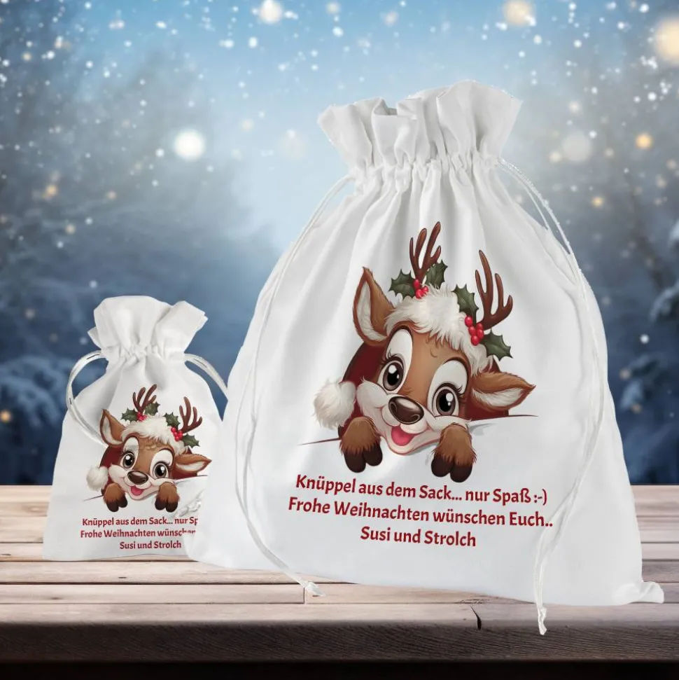 diese samtweichen Geschenkbeutel sind ideal für Nikolaus und Weihnachten. Mit diesen hübschen Beuteln präsentieren Sie Ihre Geschenke mit einer besinders persönlichen Note.