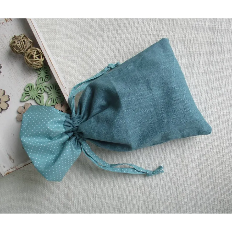 Die Beutel haben einen praktischen Verschluß, sie werden mit dem genähten Band in Kontrastfarbe einfach zugezogen.