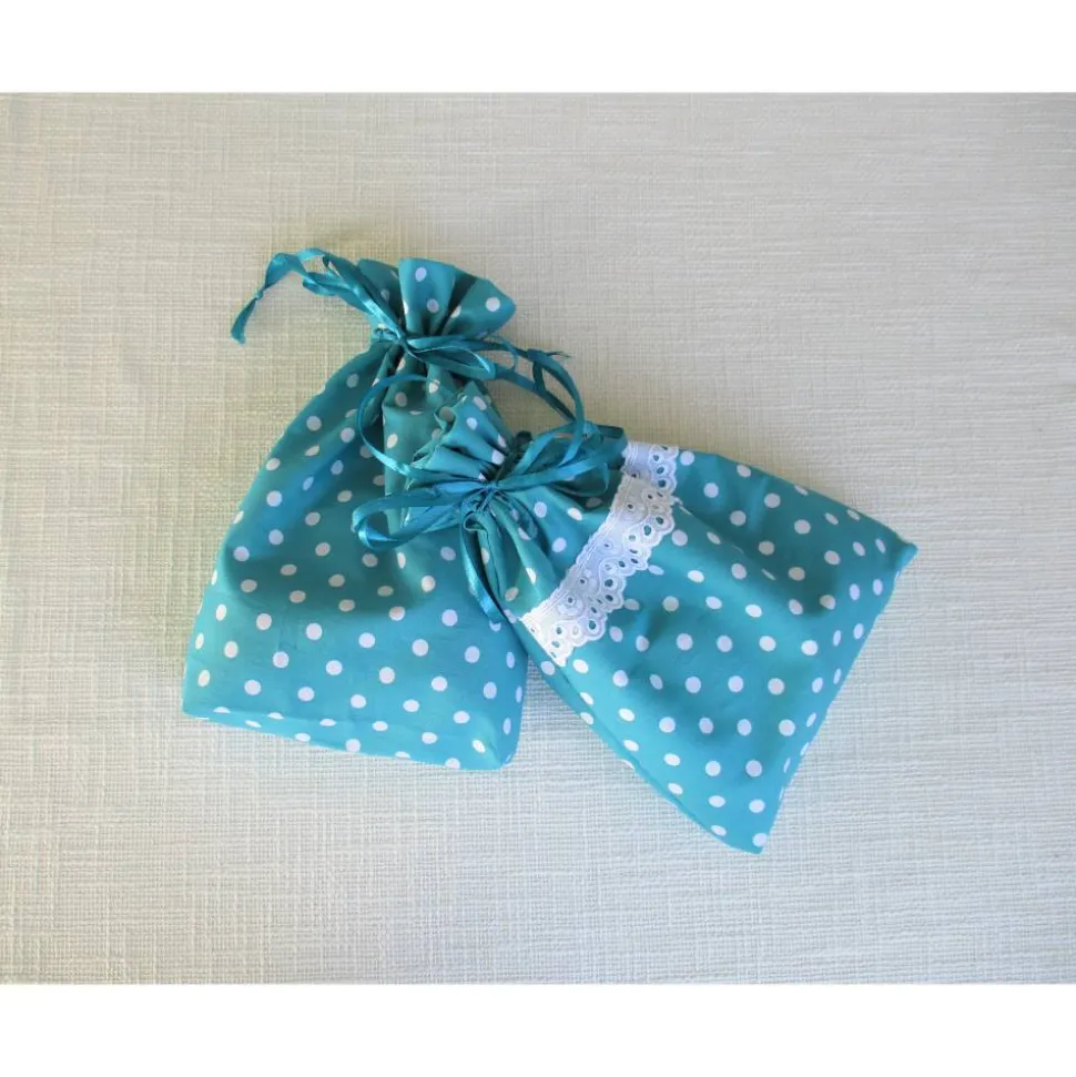 Ein Beutel ist mit weißer Baumwollspitze genäht, der andere etwas schlichter ohne.