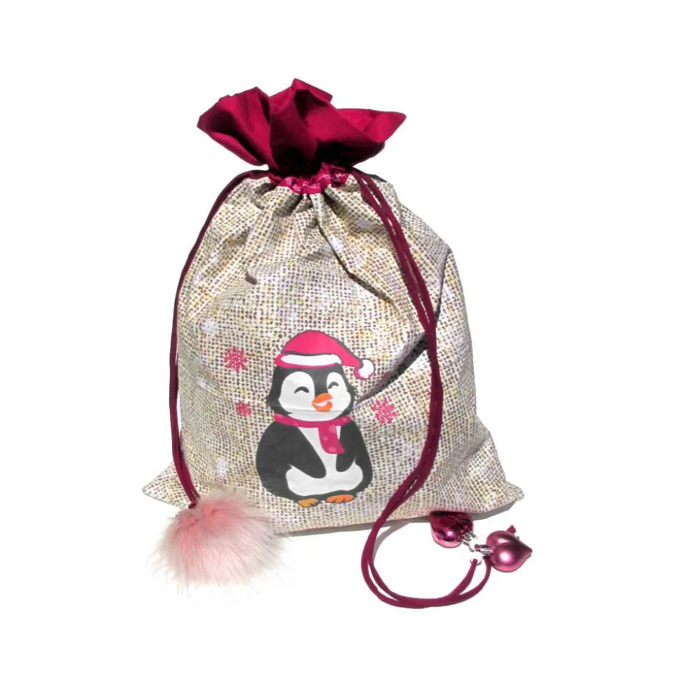 Verschenken Sie einzigartig und umweltfreundlich! Der Geschenkbeutel XXL Nikolaussack Pinguin ist die perfekte Geschenkverpackung für Weihnachten und Nikolaus. Gefertigt aus hochwertigem, doppellagigem Baumwollstoff, besticht er außen durch die wunderschöne Sackleinenoptik in Beige, Braun, Gelb und Weiß mit liebevollem Pinguindruck, während das Innenfutter in edlem Dunkelrot uni überzeugt.