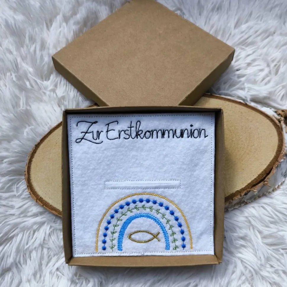 Die handliche Box (ca. 12 x 12 x 1,5 cm) bietet Platz für gängige Gutscheinkarten im EC-Karten-Format, kann aber auch mit Geld, Süßigkeiten oder kleinen Aufmerksamkeiten gefüllt werden – ganz nach deinem Geschmack und der bestickte Filzeinleger verleiht der Box eine wunderschöne, persönliche Note.