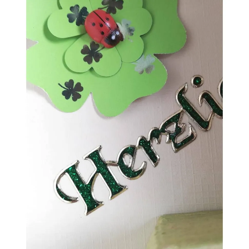 Die Verpackung besteht aus Designerkarton in hellgelb, verziert mit Kleeblättern, einem Holzmarienkäfer und einer kleinen Pappschachtel mit Sticker und Stoffschleife. In der Schachtel findest du vier kleine Glücksbringer: ein Glasfläschchen mit Pusteblumensamen, ein 1 Cent Stück, ein Holzmarienkäfer und ein Glasnugget mit Kleeblatt. Du kannst die Glücksbringer ganz einfach herausnehmen und die Schachtel nach deinen Wünschen selbst befüllen.