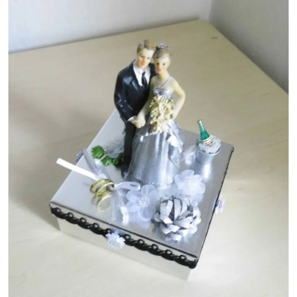 Mit den Maßen von 13 x 13 x 5 cm (Höhe inklusive Figuren: 19 cm) bietet die Box ausreichend Platz für Geldgeschenke, Gutscheine oder kleine Aufmerksamkeiten. Sie ist kein Kinderspielzeug, sondern ein hochwertiger Dekorationsartikel für Erwachsene, der den besonderen Anlass würdig unterstreicht.