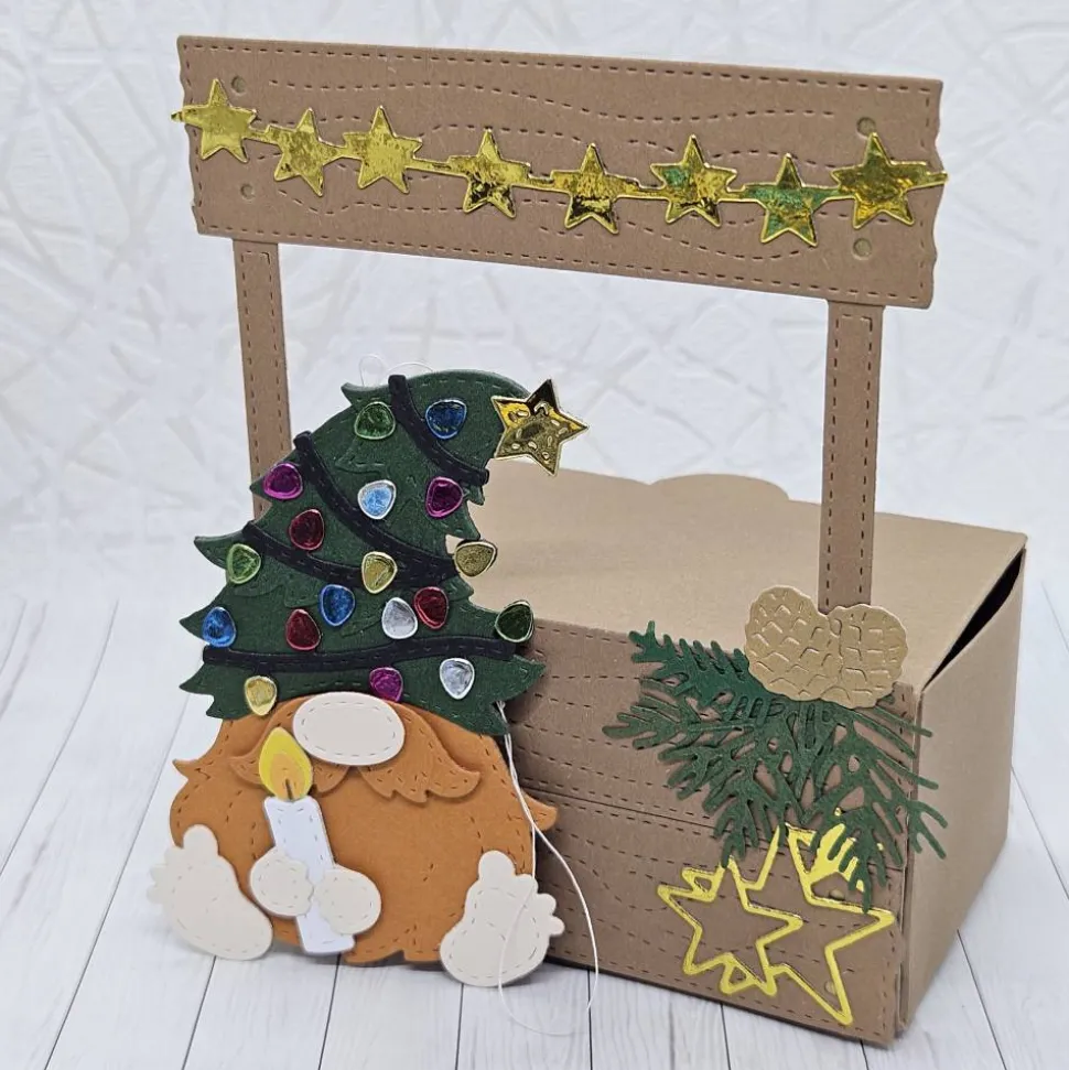 Diese Box vereint zwei beliebte Weihnachtsmotive in einem: den gemütlichen Wichtel und den festlichen Weihnachtsbaum! Sie ist die perfekte rustikale Verpackung für Gutscheine, Geldgeschenke oder kleine Präsente in der Advents- und Weihnachtszeit. Das Design in Braun, Grün und Gold passt hervorragend zum traditionellen Weihnachtsdekor.
