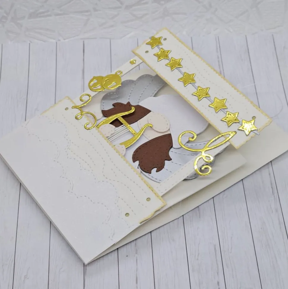 Diese bezaubernde Wichtelbox ist mehr als nur eine Verpackung – sie bringt mit einem kleinen Schutzengel in Wichtelinenform Herzenswärme und ein Lächeln. In verschiedenen Weißtönen gehalten und mit goldenen Akzenten verziert, sitzt das Engelchen verträumt an ihrer Bude in den Wolken und spielt auf der Leier. Die Wichtelbox ist wie ein liebevoll dekorierter Verkaufsstand gestaltet und eignet sich perfekt, um Geschenke besonders individuell zu überreichen.