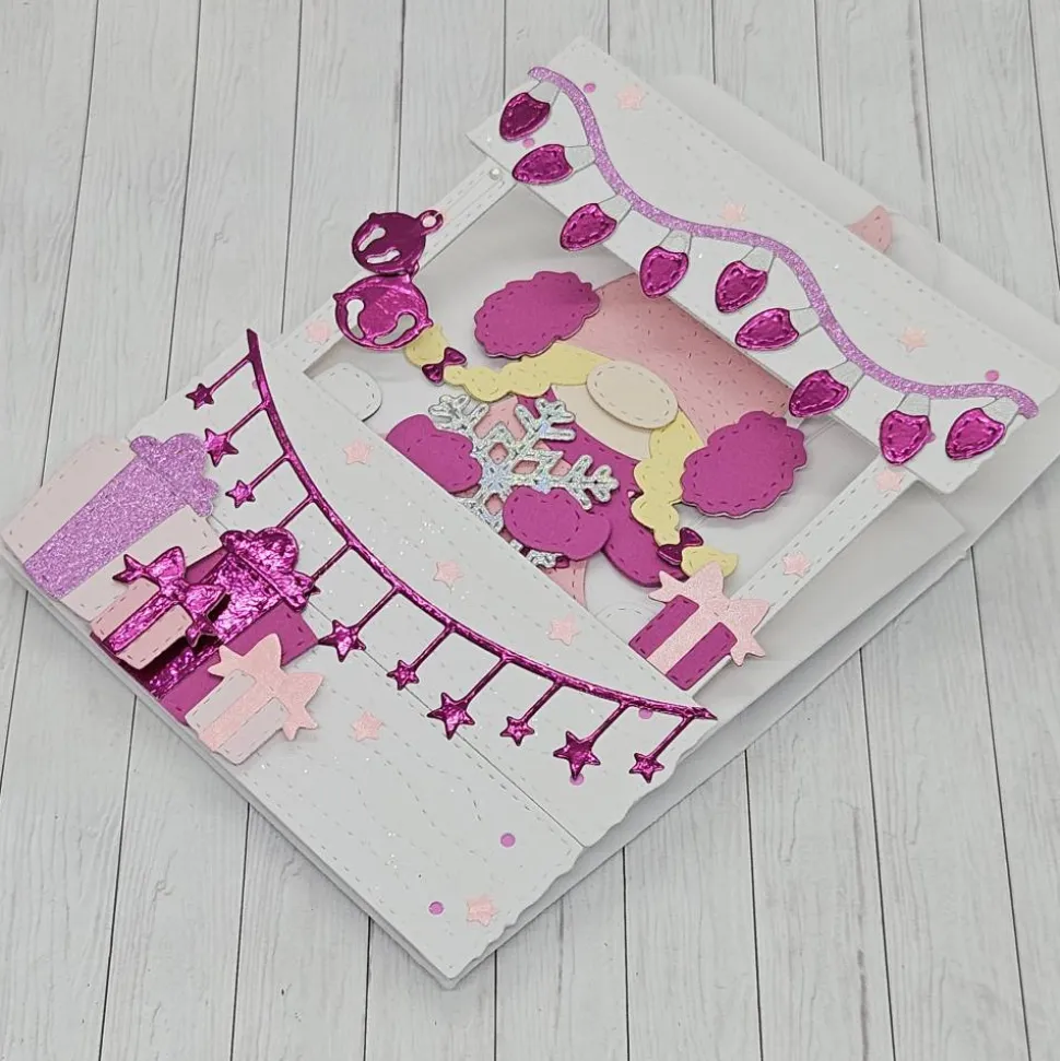Diese Box ist ein echter Blickfang und perfekt für alle, die festliche Farben abseits des traditionellen Rot und Grün lieben! Sie ist ideal, um Gutscheine, kleine Geschenke oder Geldgeschenke stilvoll und persönlich zu überreichen. Die Farbgebung in zartem Rosa und kräftigem Pink, ergänzt durch glitzernde Akzente, sorgt für eine moderne, winterliche Stimmung.