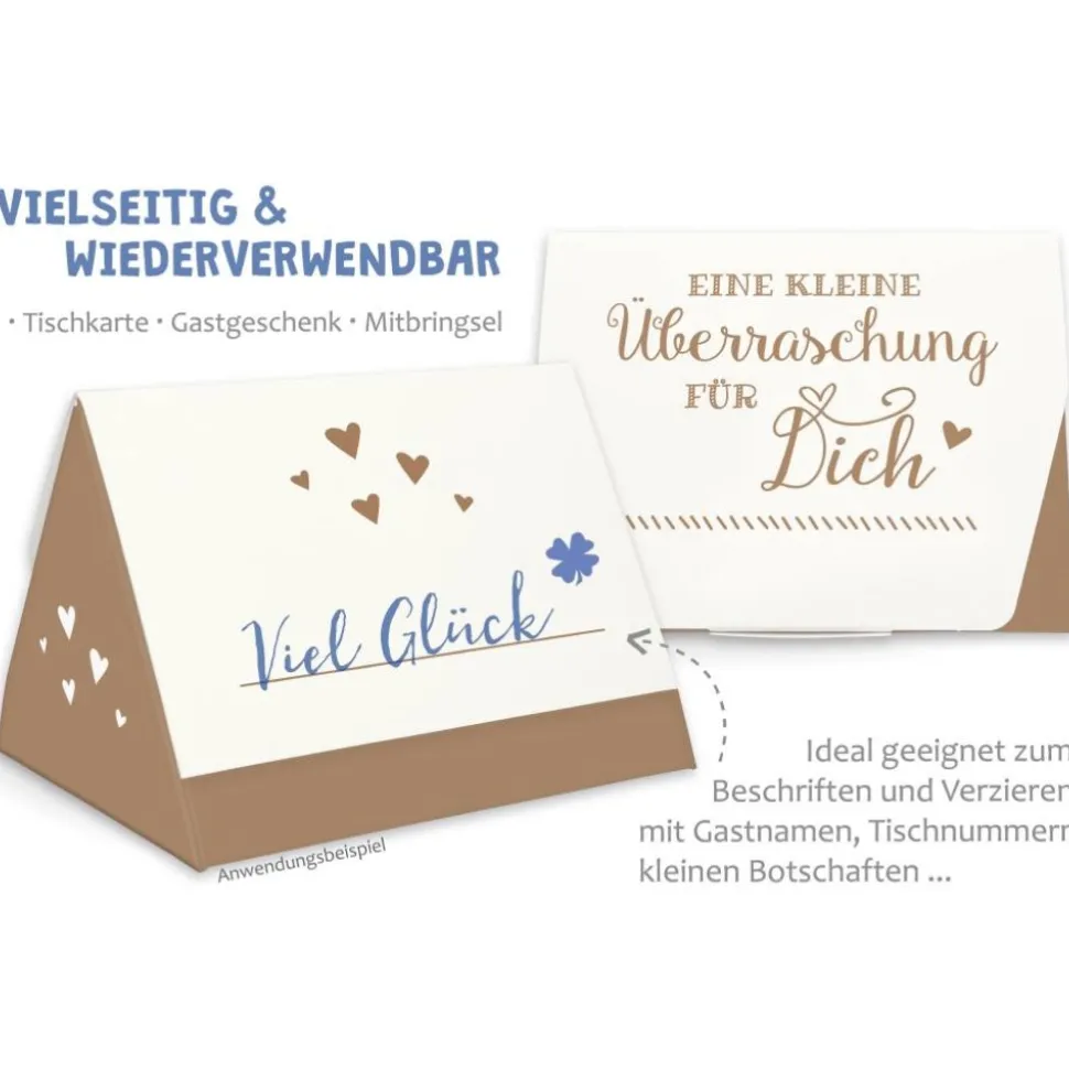 • Du kannst die Geschenkboxen auch als hochwertige Platzkarten verwenden, da sie mit jedem Stift (auch mit Tinte) beschreibbar sind.
