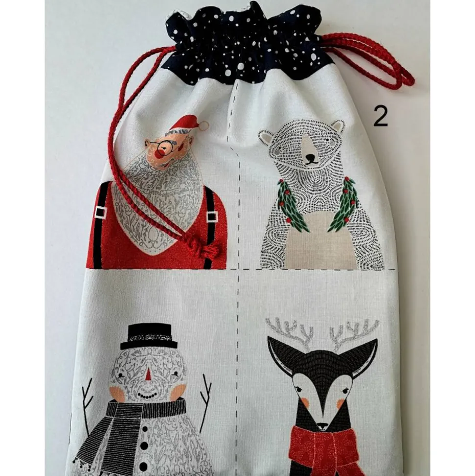 Entdecke liebevoll genähte Geschenkebeutel aus Baumwolle mit einzigartigen weihnachtlichen Motiven!