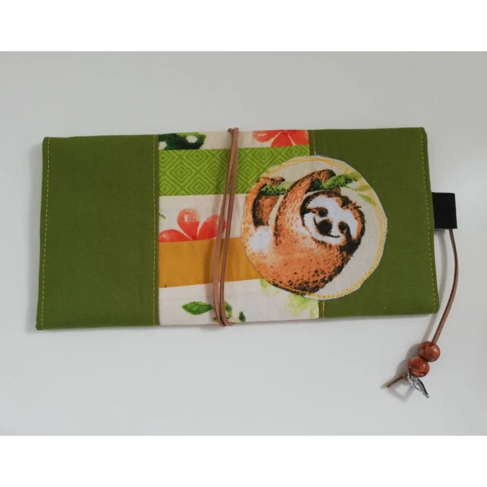 Das Kuvert besteht aus verschiedenen 100% Baumwollstoffen im Patchworkstil. Zusammengehalten wird es von einem Lederband und 2 schönen Holzperlen. Verstärkt mit Vlieseline S320. Meine Stoffe werden vor der Verarbeitung vorgewaschen.