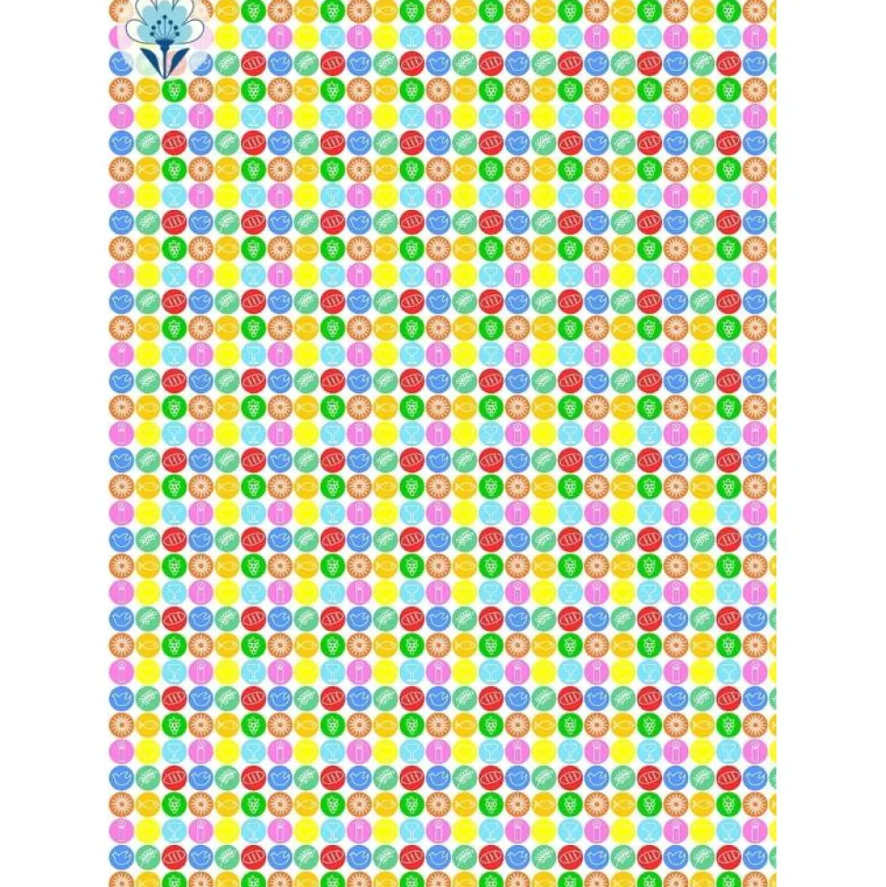 Geschenkpapier mit stilisierten Symbolen als Kontur, Weiß auf bunten Punkten.