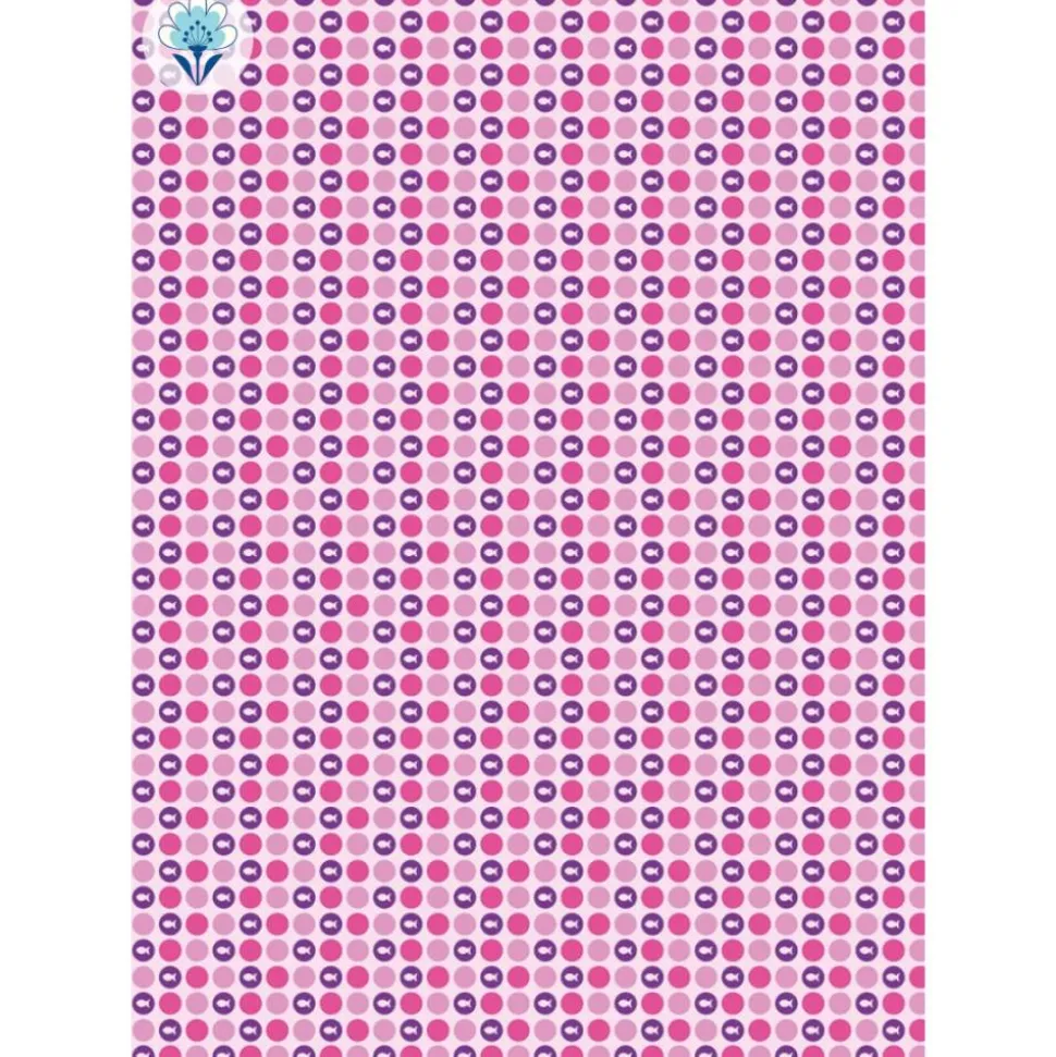 Geschenkpapier mit stilisierten Fischen und Punkten auf Rosa.
