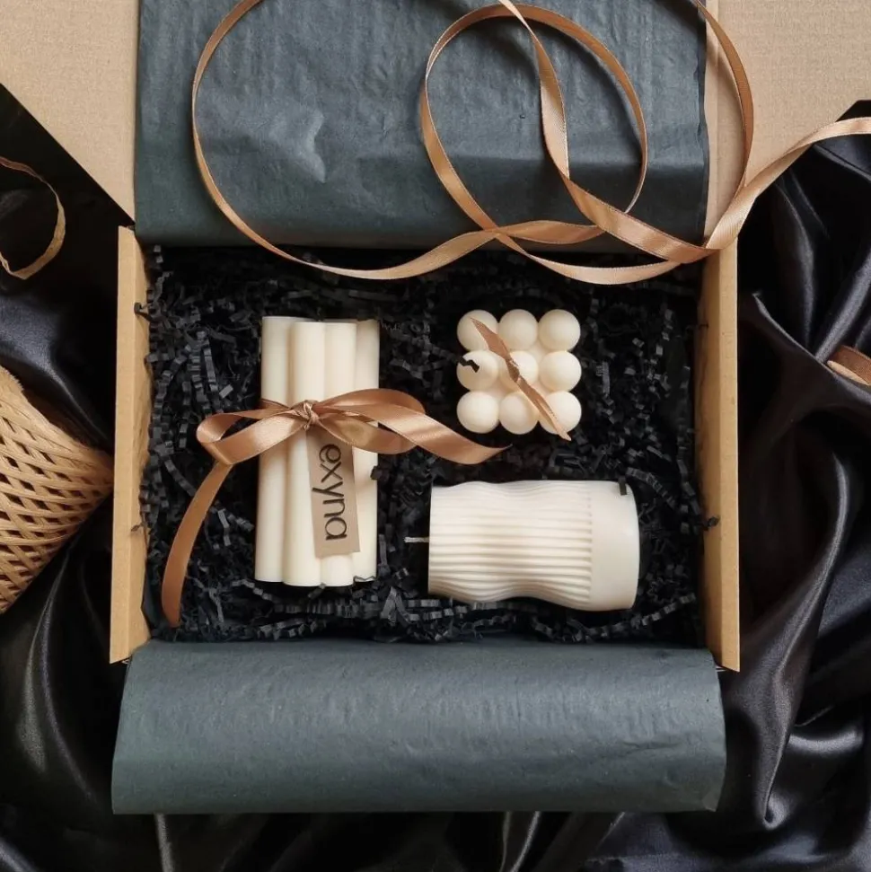 Die Collection enthält 3 einzigartige Kerzen: ein Vierblättriges Kleeblatt, eine Kerze im wellenförmigen Design und eine Bubble-Cube Kerze.