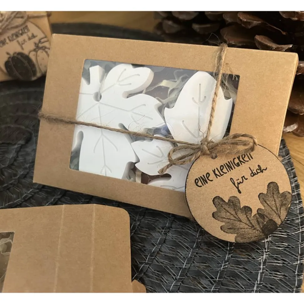 Ob als kleines Mitbringsel, Dankeschön oder persönliches Geschenk. Die Rayin-Anhänger sind kleine Schätze, die von Herzen kommen. Verpackt in einer Kraftkarton-Schachtel mit passendem Etikett, machen sie schon beim Auspacken Freude und sind eine schöne Geschenkidee für die herbstliche Jahreszeit.