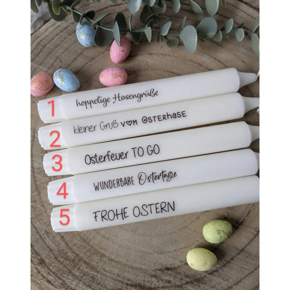 Das Set ist mit einem weißen Kerzenständer mit Schmetterling, Herz, Vogel oder blanco erhältlich.