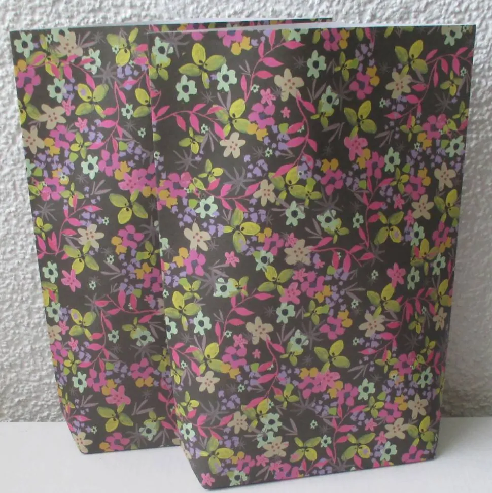 Die Geschenktüten werden in Handarbeit von der *Buchbinderei der Werkstatt für berufliche Rehabilitation/Darmstadt* aus unserem Geschenkpapier vorgefertigt. Wir stellen die Geschenktüten fertig und vergrößern gerne auf Anfrage die Bodenbreite z.B. auf 5 cm, 6 cm. Bitte beachten Sie, dass sich dadurch die Höhe der Tüte verkleinert.