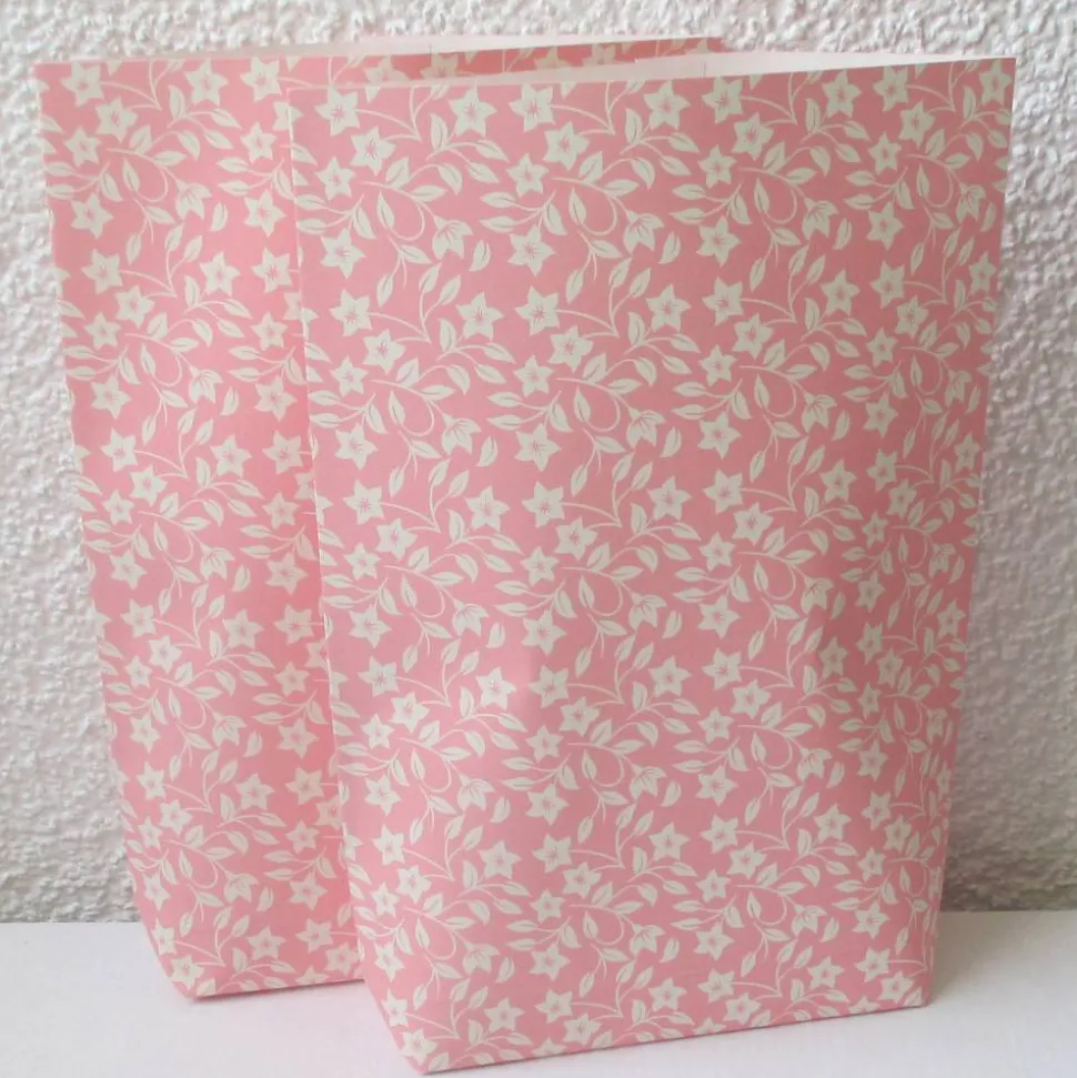 Geschenktüten Blümchen auf Rosa, 2 Stück geblümte Bodenbeutel-Papiertüten, Bodenbreite variabel
