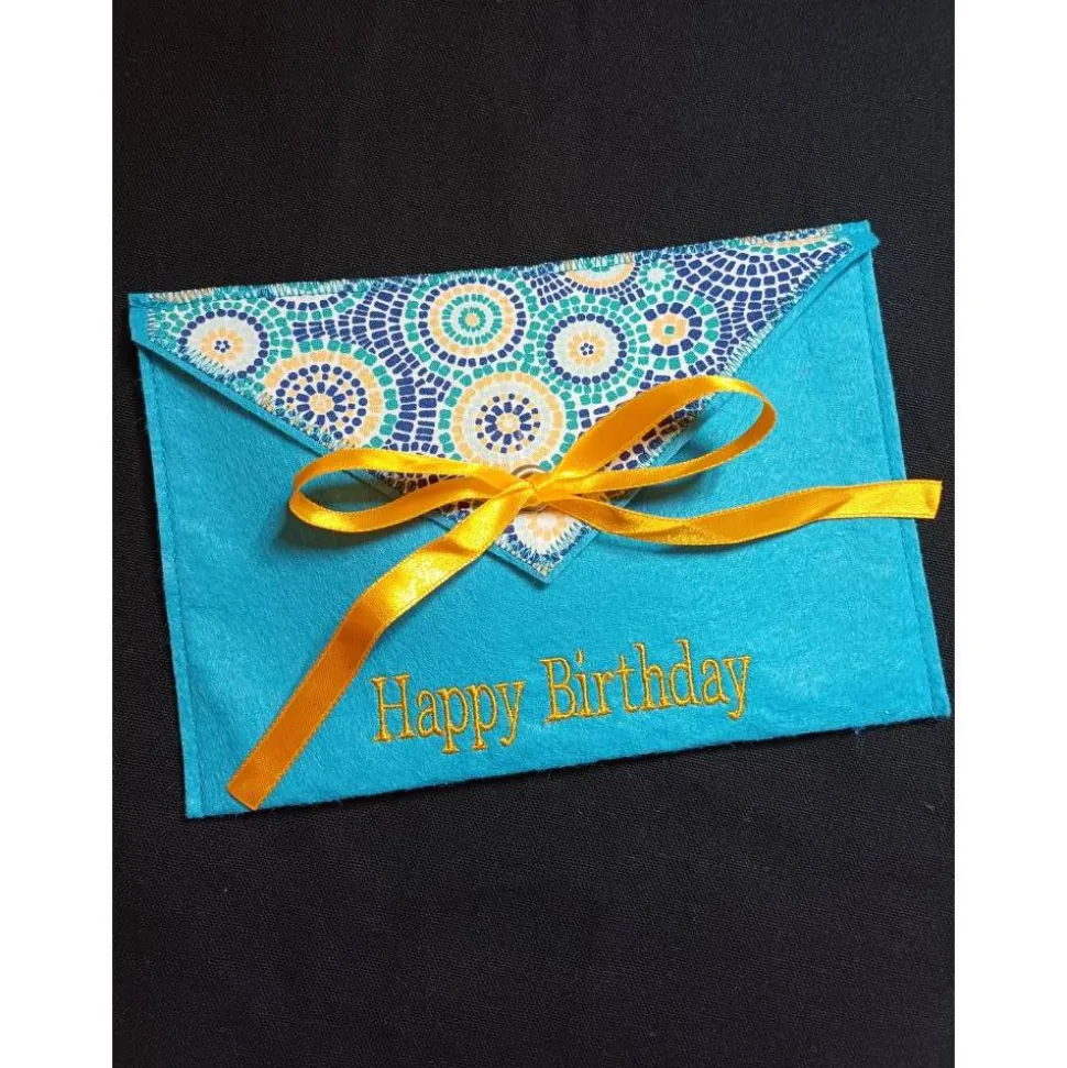 Geschenkumschlag mit Stickerei „Happy Birthday“