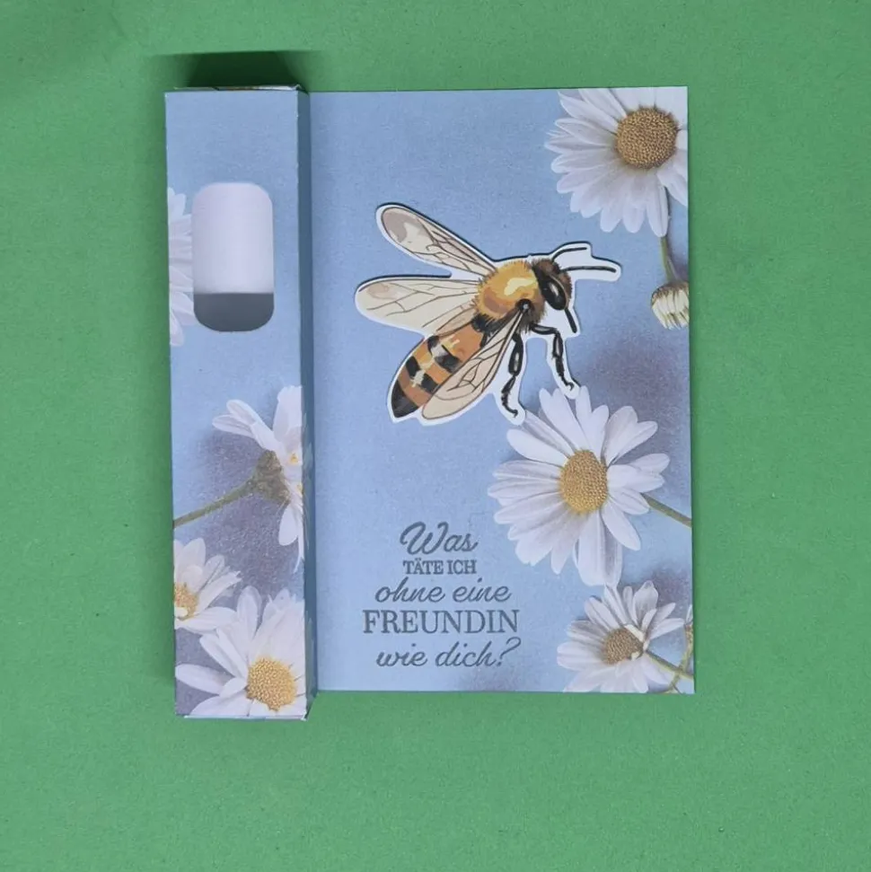 Unsere handgefertigten Verpackungen mit Bienen- und Gänseblümchenmotiv laden zum Träumen ein und setzen ein achtsames Zeichen für Naturverbundenheit.